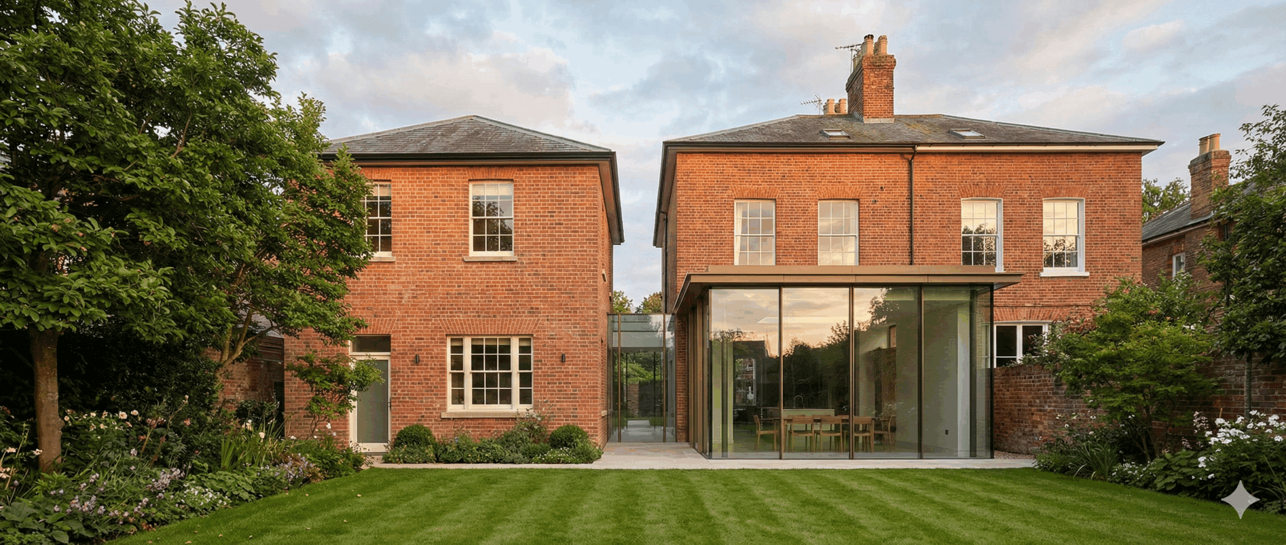 Historic England prefers extensions that make no attempt to pass as original fabric. A fake Georgian orangery on a genuine Georgian house raises authenticity questions. A clearly contemporary glass structure avoids these problems entirely.