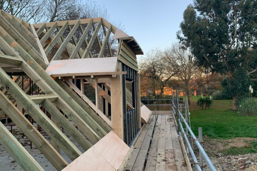 Our specialist team handled the frame construction, cladding, window fitting, and tiling. The customer’s contractor completed the groundworks, electrics, internal finishes, decorating, and landscaping. Despite challenges such as the pandemic, Christmas holidays, and winter weather, the project was completed within 12 weeks—delivering outstanding results.